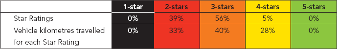 - the vehicle kilometres travelled for each Star Rating. This shows the percentage of traffic driving within each of the given Star Ratings.
